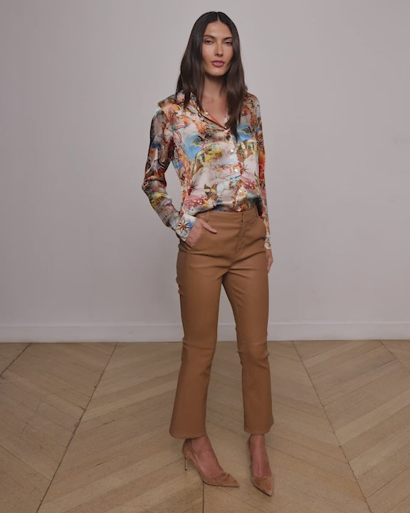A sleek baby bootcut trouser that molds to the figure in supple stretch leather. This wardrobe essential is now back in cognac.
