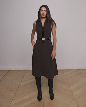 Your favorite desk-to-drinks dress is now back in a brown structured suit fabric. Princess seams and a waist belt cinch the look together—and yes, it has pockets.