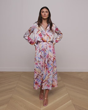 Meet the iconic long-sleeve silk button-down that belongs in every wardrobe. This L'AGENCE bestseller is now back in a playful pink postcard print.