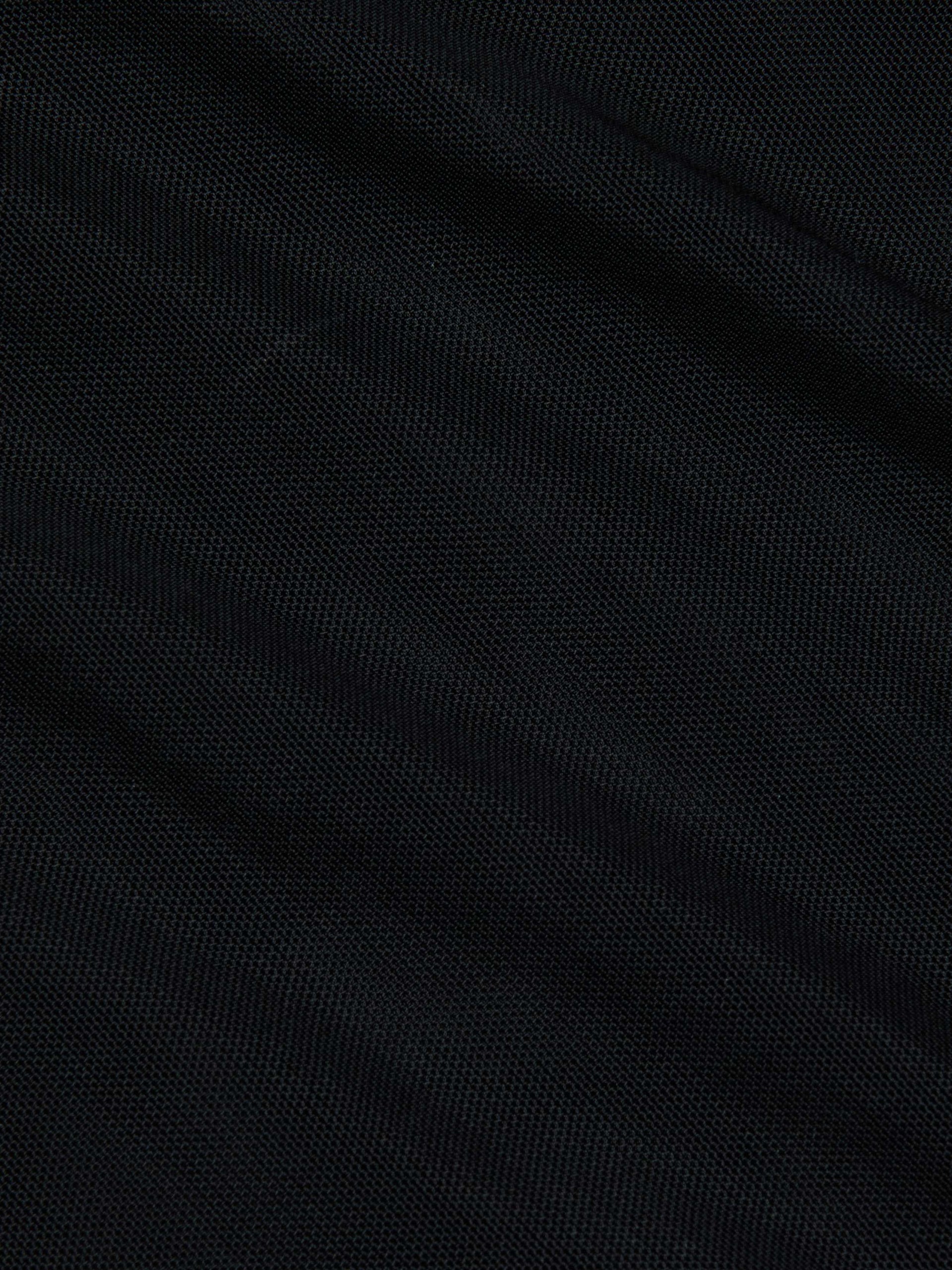 Close-up of the Elowen Mesh Bodysuit by L'AGENCE, featuring dark, textured mesh with subtle diagonal lines and fine patterns. The smooth, gently folded surface adds depth and softness, making it ideal as a supportive base layer.