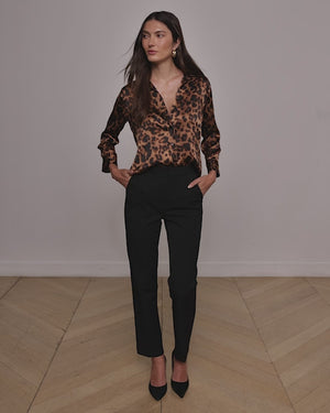 Meet the iconic silk button-down that belongs in every wardrobe. Our signature three-quarter sleeve shirt is back in leopard print.