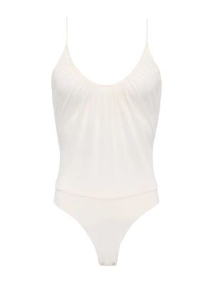 This subtly sexy bodysuit belongs in your wardrobe for all four seasons. Now in vintage white.