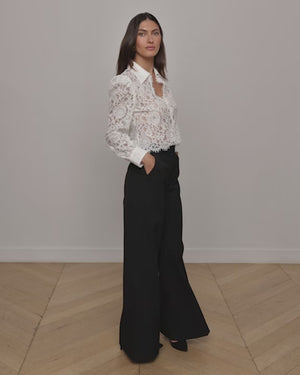 Crafted from refined floral lace, the Anita cropped blouse features a pointed collar, long sleeves, and a scalloped hem for a romantic finish. Puffed shoulders add to its feminine look.