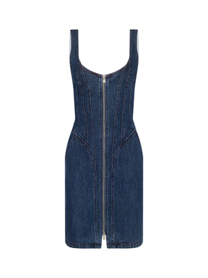 Votre nouvelle robe courte coup de cœur. La robe Jaxyn affiche une coupe corset avec des coutures galbantes et une audacieuse fermeture zippée sur le devant, pensées pour sublimer et structurer la silhouette. Elle est désormais disponible en indigo.