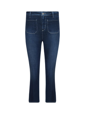 Un jean évasé court facile avec le look raffiné d'un pantalon. Les poches plaquées ajoutent un subtil attrait rétro. Maintenant dans un délavage bleu foncé avec une légère décoloration conçue pour épouser le contour de la jambe pour un effet flatteur et allongeant.