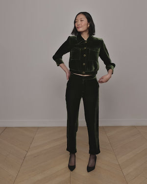 Le pantalon droit classique de L’AGENCE, conçu avec une taille épurée et une coupe minimaliste. Maintenant mis à jour en velours olive profond.