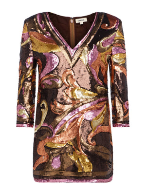 Tous les regards seront tournés vers vous avec la robe Octavia. Ce style droit à coupe décontractée présente des paillettes partout disposées dans un motif tourbillonnant audacieux et personnalisé, terminé par un décolleté en V profond. Parfait pour les fêtes et voler la vedette.