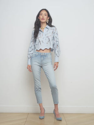 Notre spin moderne sur un chemisier en dentelle, la Seychelle offre des détails de chemises classiques dans une coupe recadrée fraîche. Maintenant en bleu clair.