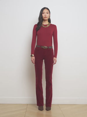 Un ajustement classique dans une fabrication moderne. Stevie combine une jambe droite propre avec un velours étiré luxueux dans la tendance des couleurs rouges foncées de la saison.