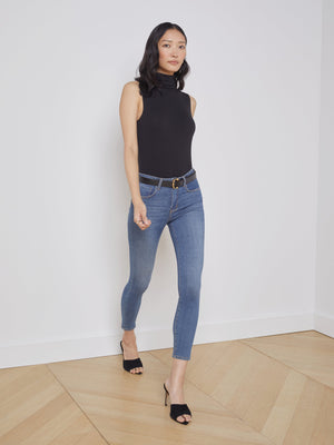 Un dolcevita nera senza maniche con fascino senza tempo ottiene una sottile lucentezza e una finitura liscia da una lussuosa fabbricazione in microfibra. Slim Fit completa il denim ed è ideale per lo strato di base.