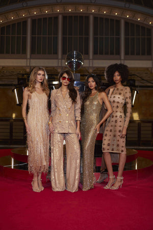 “This collection captures the moment—and this is her moment,” says Fashion Director Tara Rudes-Dann. “When she steps into these pieces, she commands the night. She’s magnetic and unstoppable.”