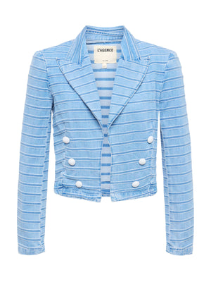Incontra il tuo blazer di denim caldo. Questa giacca a strisce è lo strato perfetto da indossare tutti i look da primavera all'estate dall'ufficio al brunch.