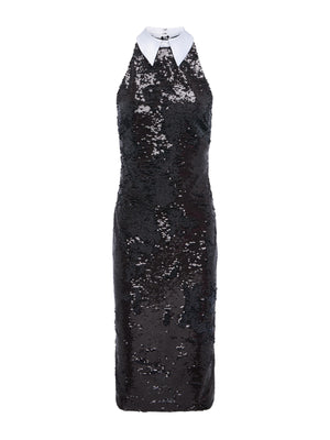 This style debuted at our Fall ‘25 NYFW presentation. The Lilith dress takes the glamour of sequins and gives it a tailored finish. Featuring a structured white poplin collar, it’s fully embellished with high-shine black sequins for a statement-making look. The fitted shape hugs the body just right, perfect for nights out when you want polish with impact.