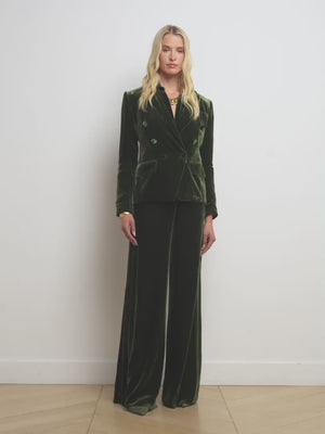 The Pilar in deep olive velvet is a L’AGENCE core essential. This perfectly proportioned wide-leg pant is a bestseller year after year.