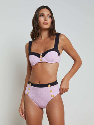 Our most flattering and sophisticated bikini bottom, featuring black contrast trim and decorative gold buttons.
